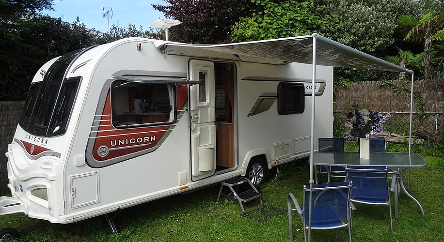 There are two single beds (each 190x68 cm), and an extra double bed can be converted from the front seating area. PLEASE NOTE the bed sizes to ensure they meet your requirements. This is a caravan and space is limited, so we like to call it cosy. Fun for couples and great for kids who want an adventure for a night or two.